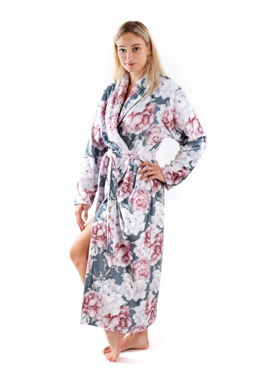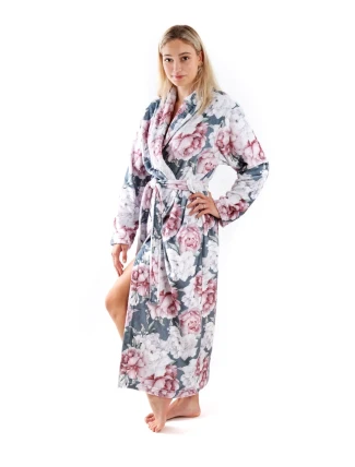 Župan Aisha z řady Secret Garden je lehký, příjemně hřejivý, dlouhý dámský župan se záplavou vznešených květů jedné z nejkrásnějších ozdob romantických zahrad. Sametově jemné květy pivoněk se skvěle doplňují s hedvábným povrchem materiálu flannel fleece na kterém jsou natištěny. Župany z řady Secret Garden si zamilujete na první dotek.