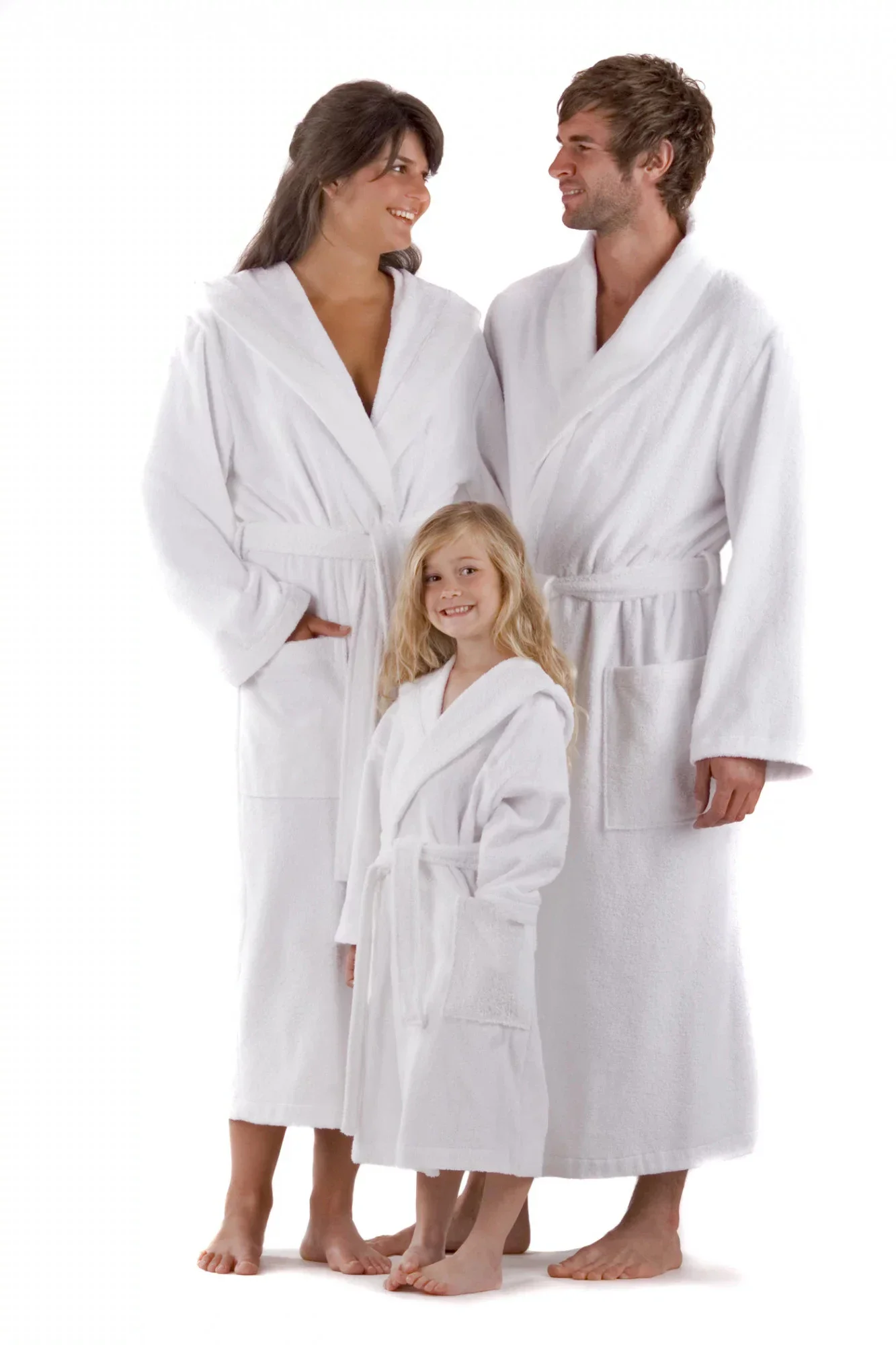 Dlouhý bílý župan se šálovým límcem je dostupný jako unisex model a v této kolekci Sauna lze zakoupit župan i v provedení župan s kapucí, kimono župan střih a i jako dětský župan s kapucí. Můžete tak sladit celou rodinu.