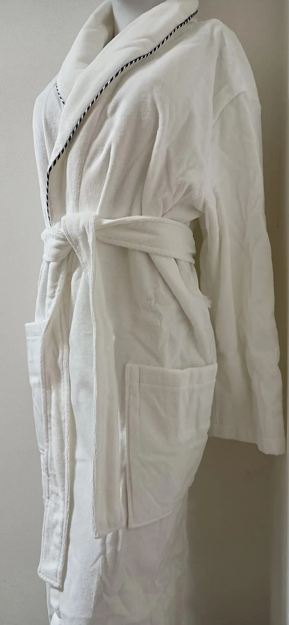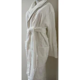 Dlouhý dámský župan z froté materiálu uvnitř a mikroplyšu vrchní části,
