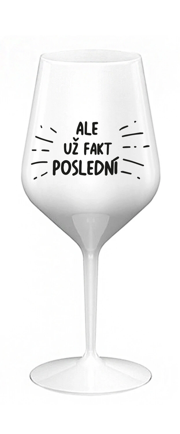 ALE UŽ FAKT POSLEDNÍ - bílá nerozbitná sklenice na víno 470 ml