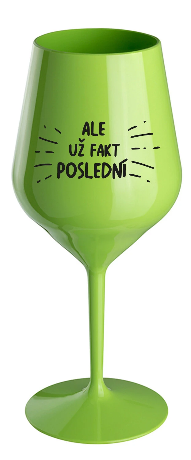 ALE UŽ FAKT POSLEDNÍ - zelená nerozbitná sklenice na víno 470 ml