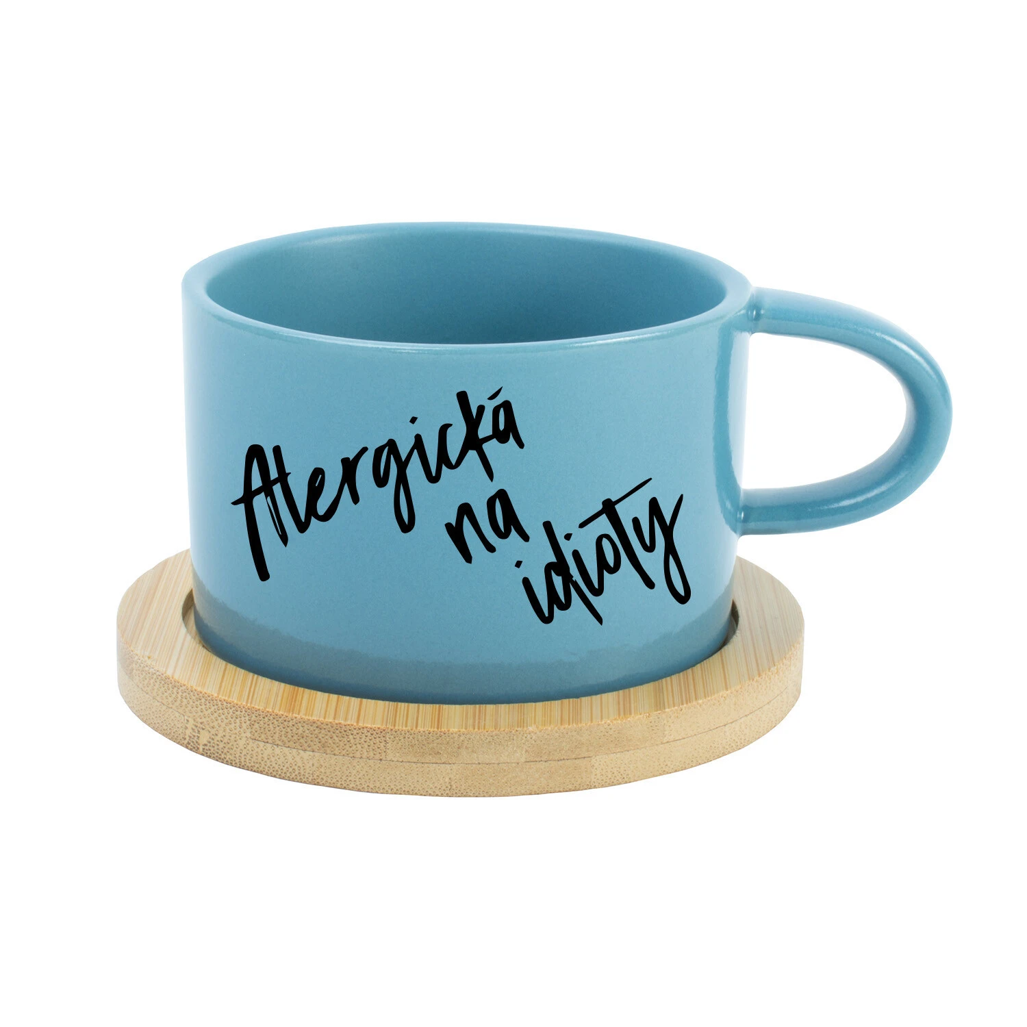 Ručně vyráběný keramický hrneček typu makronka o objemu 200 ml s potiskem „alergická na idioty“. Jemný tvar, hezké barvy a sdělení, které funguje jako osobní ochranná zóna. Bez vedlejších účinků (kromě úlevy).