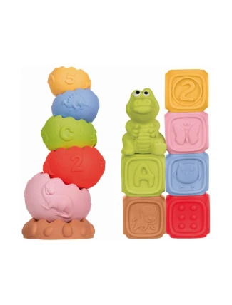 - Díky měkkému materiálu a výstupkům masírujícím dásně lze hračky bezpečně používat i jako kousátka.
