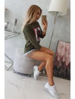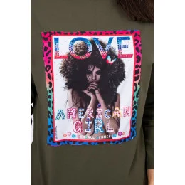 American Girl khaki grafická halenka S/M - L/XL