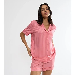 Dámská noční košile Amourette Jacquard Boyfriend Shirt - RED - růžová 00BE - TRIUMPH