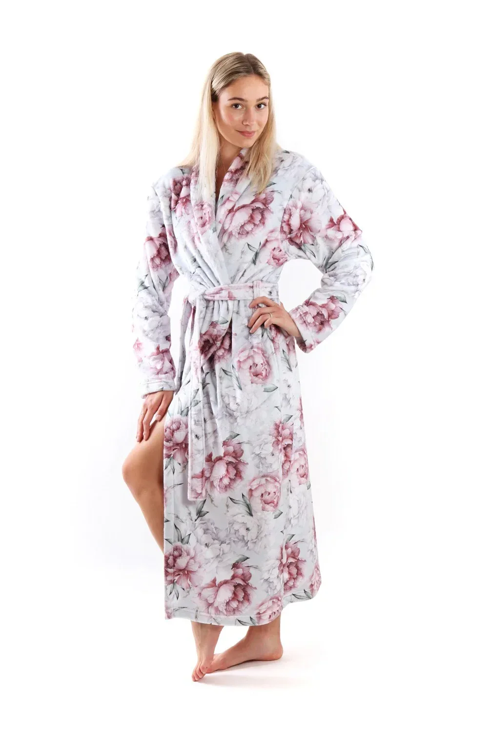 Župan Annie z řady Secret Garden je lehký, příjemně hřejivý, dlouhý dámský župan se záplavou vznešených květů jedné z nejkrásnějších ozdob romantických zahrad. Sametově jemné květy pivoněk se skvěle doplňují s hedvábným povrchem materiálu flannel fleece na kterém jsou natištěny. Župany z řady Secret Garden si zamilujete na první dotek.
