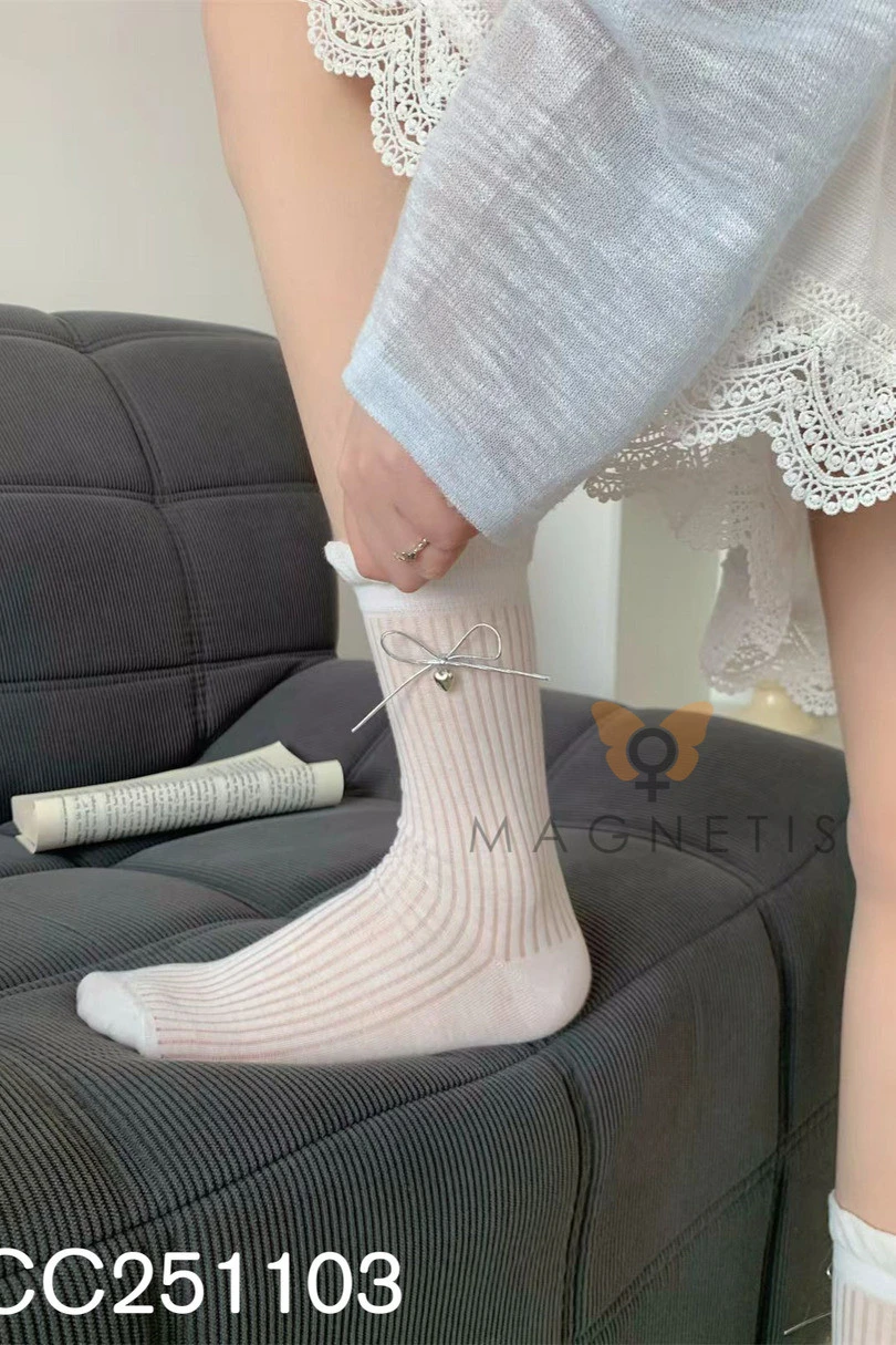 Skarpetki damskie Magnetis CC-251103 z aplikacją to elegancki i stylowy dodatek, który łączy klasykę z subtelnym, kobiecym detalem. Model w delikatnym odcieniu z pionowym prążkowaniem został ozdobiony dekoracyjną kokardką z metalicznym akcentem, co nadaje całości wyjątkowego, romantycznego charakteru. To idealne skarpetki wzorzyste dla kobiet ceniących modne i dopracowane detale. Wysoka zawartość bawełny (75%) zapewnia naturalną przewiewność oraz komfort noszenia przez cały dzień. Dodatek poliamidu zwiększa trwałość materiału, poliester wspiera estetykę wykończenia, a elastan (5%) gwarantuje elastyczność i idealne dopasowanie do stopy. Skarpetki dobrze przylegają, nie zsuwają się i zachowują swój kształt nawet po wielu praniach. Model CC-251103 doskonale komponuje się z balerinami, loafersami, półbutami oraz botkami. Sprawdzi się zarówno w stylizacjach casualowych, jak i bardziej eleganckich zestawach. Skarpetki Magnetis to połączenie wygody, jakości i modnego desi