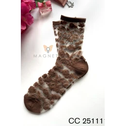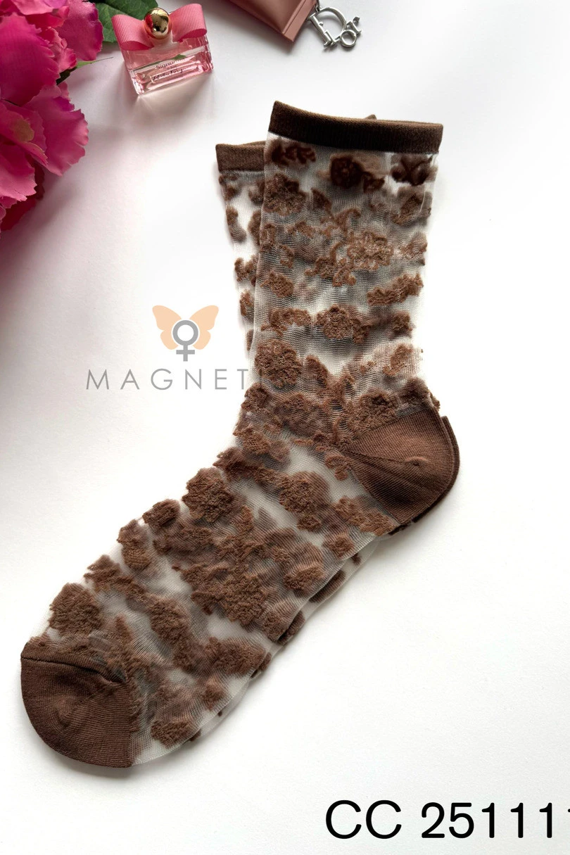 Skarpetki damskie Magnetis CC-251111 z aplikacją to wyjątkowo kobiecy i elegancki model o transparentnej, ozdobnej strukturze. Delikatna siateczka została udekorowana subtelnym, kwiatowym haftem, który nadaje całości romantycznego i stylowego charakteru. To wzorzyste skarpetki damskie, które idealnie wpisują się w aktualne trendy i stanowią efektowny dodatek do wielu stylizacji. Połączenie poliestru z wysoką zawartością elastanu (45%) zapewnia elastyczność oraz doskonałe dopasowanie do stopy. Dodatek bawełny (50%) zwiększa komfort noszenia i sprawia, że materiał jest przyjemny w dotyku. Skarpetki są lekkie, przewiewne i pięknie układają się na nodze, podkreślając jej kształt. Model CC-251111 doskonale komponuje się z balerinami, czółenkami, loafersami czy butami typu Mary Jane. Transparentne skarpetki z haftem sprawdzą się zarówno w stylizacjach wizytowych, jak i w modnych, codziennych zestawach z nutą elegancji.