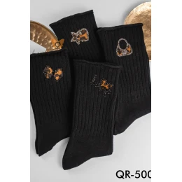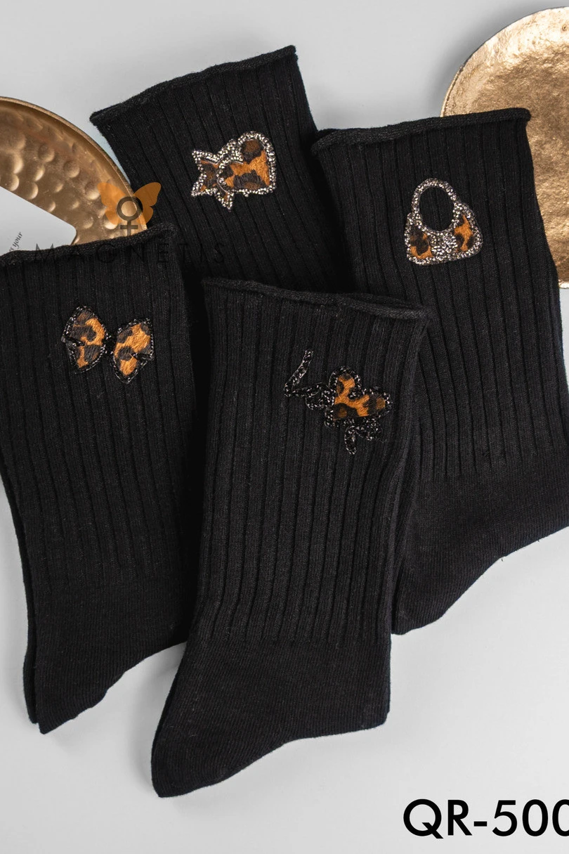 Stylové dámské ponožky MAGNETIS QR-500 jsou kombinací klasiky s módním nádechem. Jsou vyrobeny z vysoce kvalitní bavlny (92 %) s přídavkem elastanu a zaručují pohodlí při nošení a dokonalé přilnutí k noze. Černý žebrovaný podklad byl ozdoben jemnými aplikacemi ve zvířecích motivech – mašlemi, taškami a nápisy s leopardím vzorem, obklopenými třpytkami. Ponožky dokonale doplní každou stylizaci – od ležérní až po elegantní. Skvěle se hodí na každodenní nošení i jako dárek.