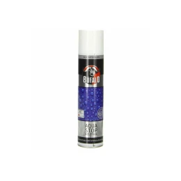 Bufalo Agua Stop je přípravek pro úplnou impregnaci, poskytující účinnou ochranu proti vlhkosti a vhodný pro všechny druhy kůže, textilií a tkanin. Kůže zůstává elastická a umožňuje průchod vzduchu. Impregnace je samozřejmě vhodná i na kožené oděvy. Před použitím odstraňte prach a nečistoty. Hmotu rovnoměrně nastříkejte ze vzdálenosti asi 30 cm. Dávejte pozor, abyste materiál nenamočili. Neleštěte ani nekartáčujte mokrou pokožku!