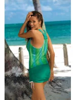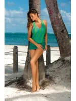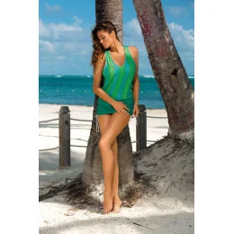Tato tunika vás překvapí svou jemností, pružností, perfektním střihem a sexy zdobením těla. Ažurový vzor zaručuje nezapomenutelný vzhled. Trojúhelníkový výstřih doplňují sportovní širší ramínka, která na zádech tvoří písmeno "x". Kolem pasu je nastavitelná šňůrka, takže si tuniku můžete upravit podle svých představ. Na obou stranách boků jsou také šňůrky, takže si můžete upravit délku tuniky. Skvělá volba pro tuto a určitě každou sezónu - prostě Must Have léta.