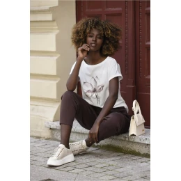 Stylová a pohodlná dámská halenka s krátkými rukávy zakončenými módním ohrnutím nesmí chybět v šatníku žádné ženy. Díky klasickému rovnému střihu se skvěle hodí ke každodenním outfitům i ležérnějším soupravám. Jemný potisk dodává halence charakter, zatímco elastická bavlněná tkanina zaručuje pohodlí po celý den. Díky přídavku elastanu se halenka dokonale přizpůsobí postavě a neomezuje v pohybu.