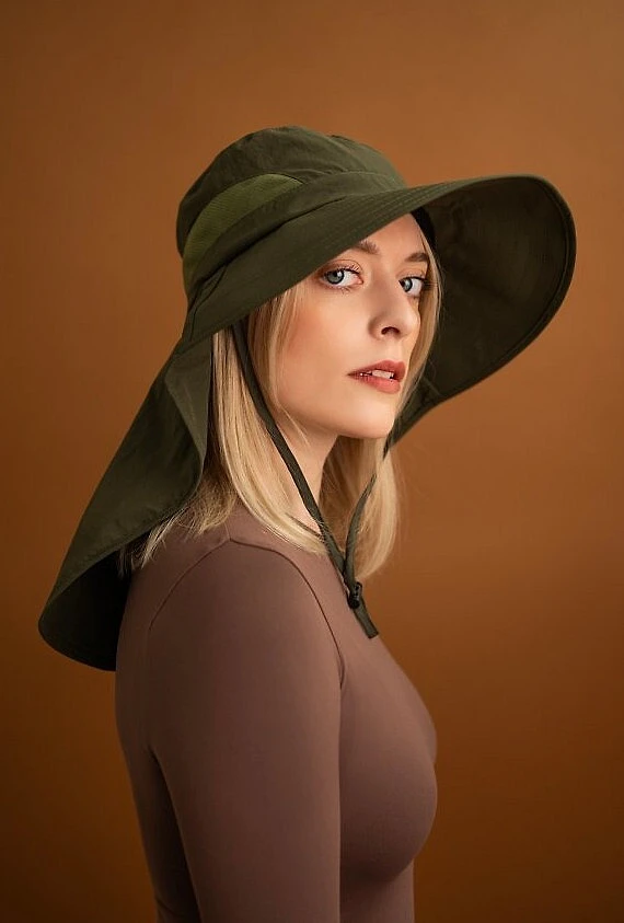 - model je vybaven zadní kšiltovkou, která chrání krk před sluncem, a nastavitelným lemem se stahovací šňůrkou na zátylku