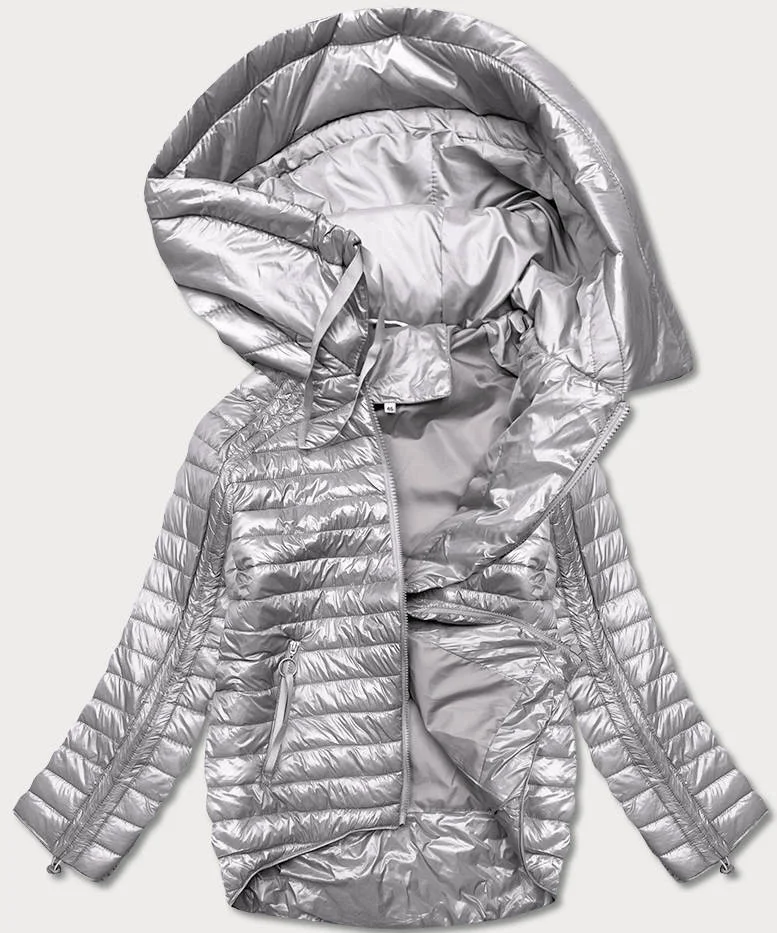 Asymetrická šedá dámská bunda s kapucí (PC-7510-61)