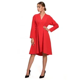 Dámské společenské šaty FOLD se sklady a páskem středně dlouhé červené - Červená - Numoco