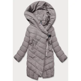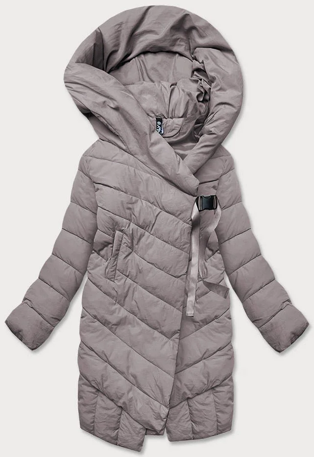 Bunda je zateplená syntetickou péřovou výplní, má dvě kapsy a zapíná se přezkou. Model má kapuci, kterou není možné odepnout. Bunda má délku ke kolenům.