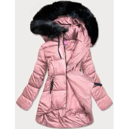 Růžová asymetrická dámská zimní bunda (8953-r)
