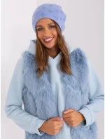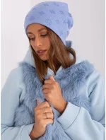 Modrá pletená dámská čepice.