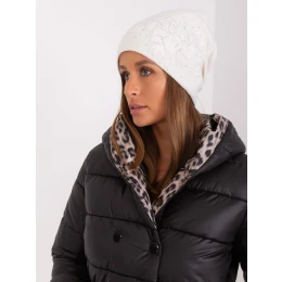 Ecru dámská zimní čepice s kamínky .