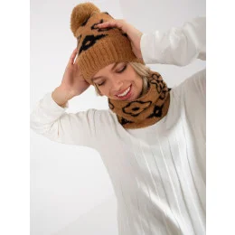 Velbloudí a černá dámská vzorovaná zimní čepice .