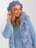 Šedomodrý baret z kašmíru a bavlny.