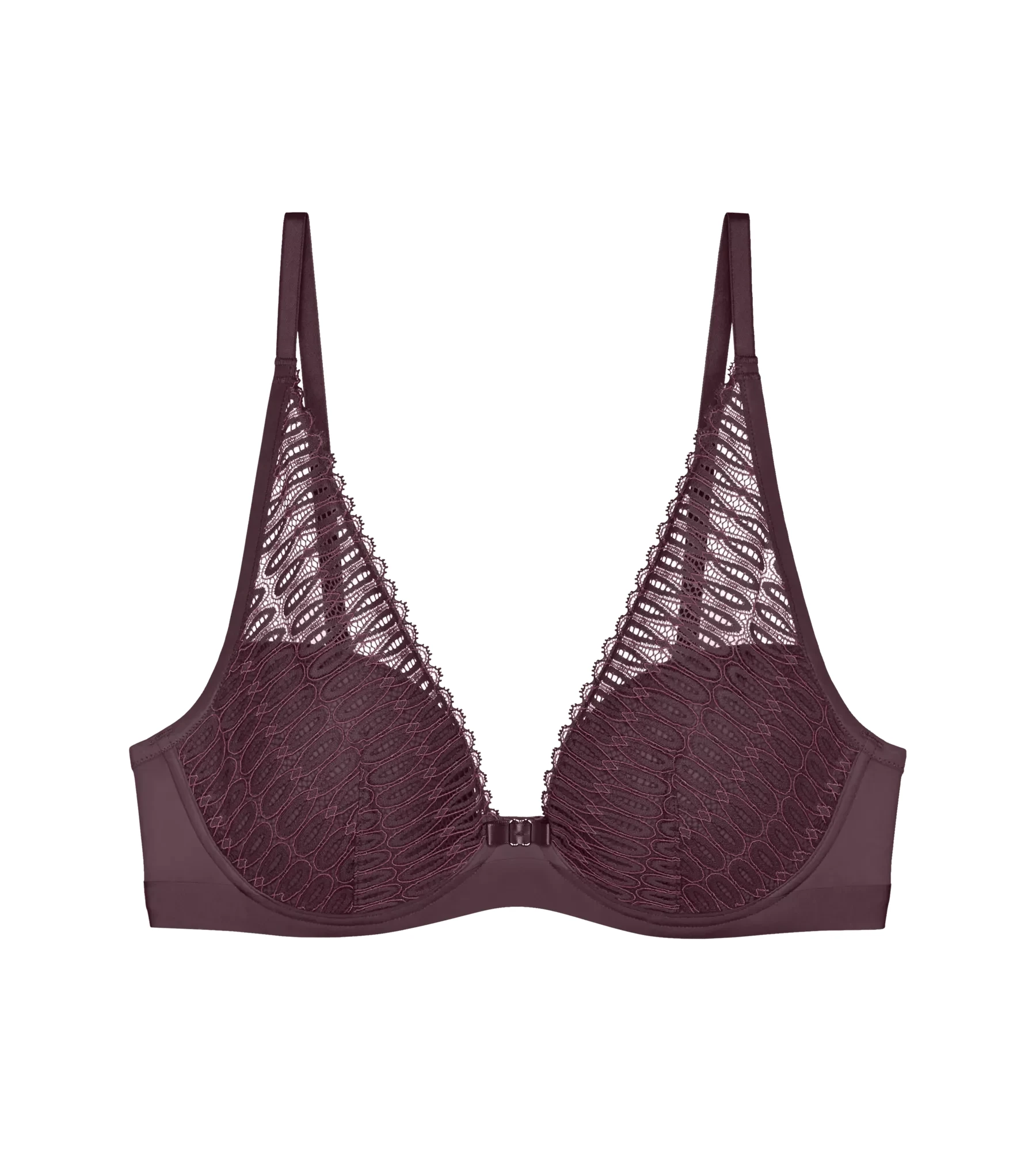 Polovyztužená podprsenka s hlubokým dekoltem z řady Triumph Style Aura Spotlight v sobě pojí styl a funkčnost. Luxusní krajkové prvky a pohodlný střih tvoří model ideální na každou příležitost.