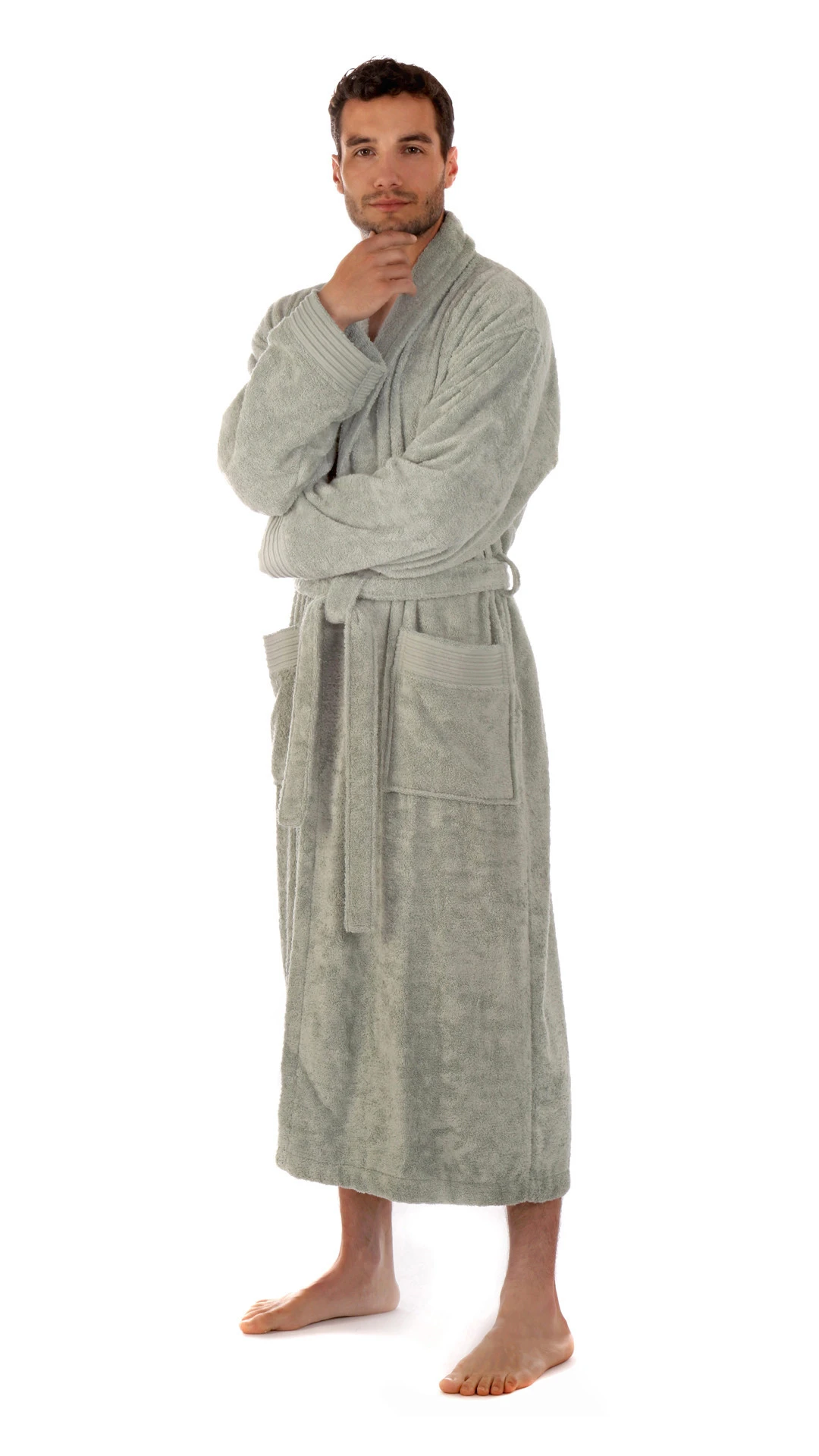Luxusní župan Austin z bambusové viskózy se šálovým límcem a elegantními bordurami na rukávech a kapsách.