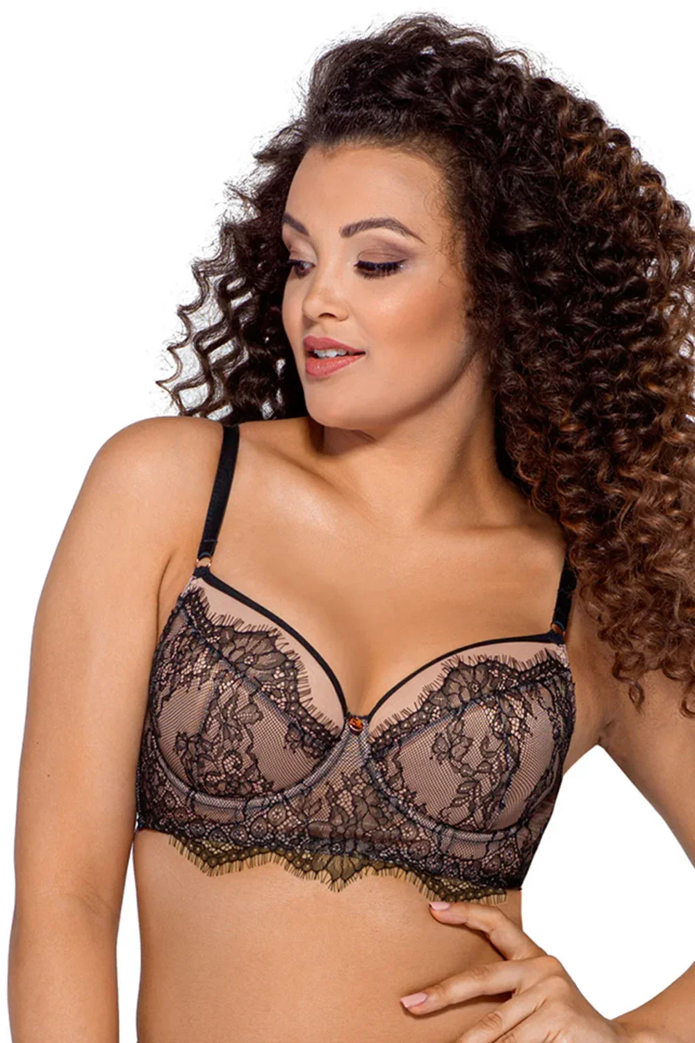 Podprsenka značky Ava, model 2007 Jardin. má drátky, které podpírají prsa a správně je tvarují. svislé kostice na bocích. výrobek má nastavitelná ramínka bez možnosti odepnutí. podprsenka se zapíná na háčky. místo zapínání: na zádech. tři řady svislých výšivek. tři stupně vodorovných výšivek. výrobek je vyroben z 88 % polyamidu, 8 % bavlny, 4 % elastanu. boky vyztužené látkou. dámský výrobek.