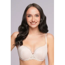 Podprsenka Ava 2256 Asielle s vyztuženými košíčky s kosticemi poskytuje bezpečnou oporu a hladkou siluetu. Horní část košíčků zdobí poloprůhledná krajka s květinovým vzorem, spodní část zůstává hladká. Ramínka jsou nastavitelná a neodepínací, zadní část se zapíná na háčky. Elastické materiály zlepšují pohodlí při každodenním nošení. Jedná se o funkční model s ženským zpracováním. Složení: polyamid 82 %, elastan 11 %, polyuretan 5 %, bavlna 2 %.
