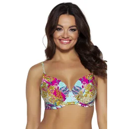 Plavky značky Ava, model SK-172. Mají drátky, které podpírají prsa a správně je tvarují. Výrobek má nastavitelná ramínka bez možnosti jejich odepnutí. Háčky na ramínka. Plavky se zapínají sponou. Místo zapínání: na zádech. Výrobek je vyroben z 80 % polyamidu, 20 % elastanu. Boky vyztužené látkou. Dámský výrobek.