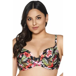 Plavky značky Ava, model SK-218. Mají drátky, které podporují prsa a vhodně je tvarují. Výrobek má nastavitelná ramínka bez možnosti jejich odepnutí. Háčky na ramínka. Plavky se zapínají na přezku. Výrobek je vyroben z 80 % polyamidu, 20 % elastanu. Dámský výrobek.