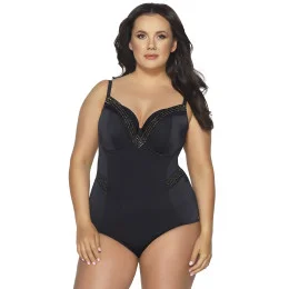 Plavky značky Ava, model SKJ-58, s drátky, které podpírají a tvarují prsa, svislými velrybími kosticemi na bocích, nastavitelnými ramínky, která nelze odepnout, a zapínáním na přezku na zádech. 80 % polyamid, 20 % elastan, boky vyztužené látkou, ženské.