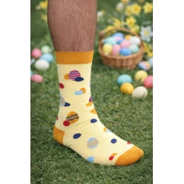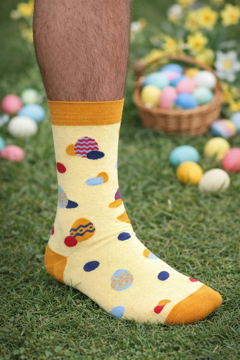 Skarpety męskie avangarde w wielkanocne wzory to doskonałe połączenie komfortu, stylu i świątecznego charakteru. Wykonane z wysokiej jakości, oddychającej bawełny z dodatkiem elastanu, zapewniają wygodę noszenia przez cały dzień – zarówno w pracy, jak i podczas rodzinnych spotkań przy wielkanocnym stole. Kolorowe motywy pisanek, zajączków i wiosennych akcentów nadają stylizacji lekkości oraz oryginalności, podkreślając świąteczny klimat. Elastyczny ściągacz gwarantuje idealne dopasowanie bez ucisku, a trwały materiał zachowuje intensywność kolorów nawet po wielu praniach. Skarpety wielkanocne męskie to świetny pomysł na prezent – praktyczny, a jednocześnie zabawny i stylowy dodatek do garderoby. Doskonale komponują się zarówno z jeansami, jak i eleganckimi spodniami, dodając stylizacji charakteru. Postaw na modne skarpety męskie casual i wprowadź do swojej garderoby odrobinę wiosennej energii.