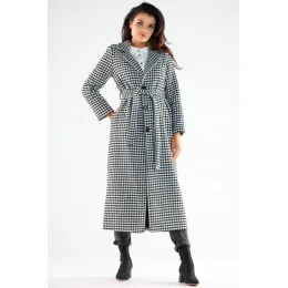 Dlouhý kabát na knoflíky, podšitý kabát, plochý pásek, výška modelu 172 cm, uvedená velikost S/M. Vyrobeno v Polsku.