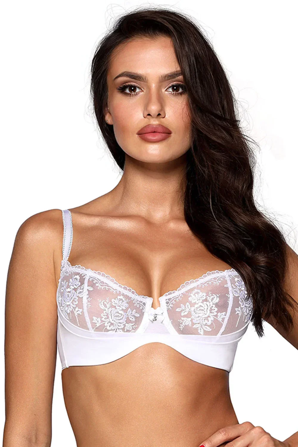 Podprsenka od Axami. Model V-10211. Má dráty, které prsa vhodně tvarují. Výrobek má nastavitelné popruhy bez možnosti odepnutí. Kovové háčky na popruh. Podprsenka se zapínáním na háčky a oči. Upevňovací bod: vzadu. Dvě řady svislých háčků. Tři stupně horizontálních háčků. Výrobek je vyroben ze 60 % z polyamidu, 34 % z polyesteru a 6 % z elastanu. Výrobek pro ženy.