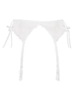 Podvazkový pás značky Axami. model V-6462 Neige. výrobek je vyroben z 93 % polyamidu, 7 % elastanu. vlastnosti výrobku: sexy jemné ženské límečky. místo zapínání: vzadu. zapínání na háčky. dvě řady svislých háčků. tři úrovně vodorovných háčků. pás se šňůrkami. dámský výrobek. šňůrky jsou nastavitelné.