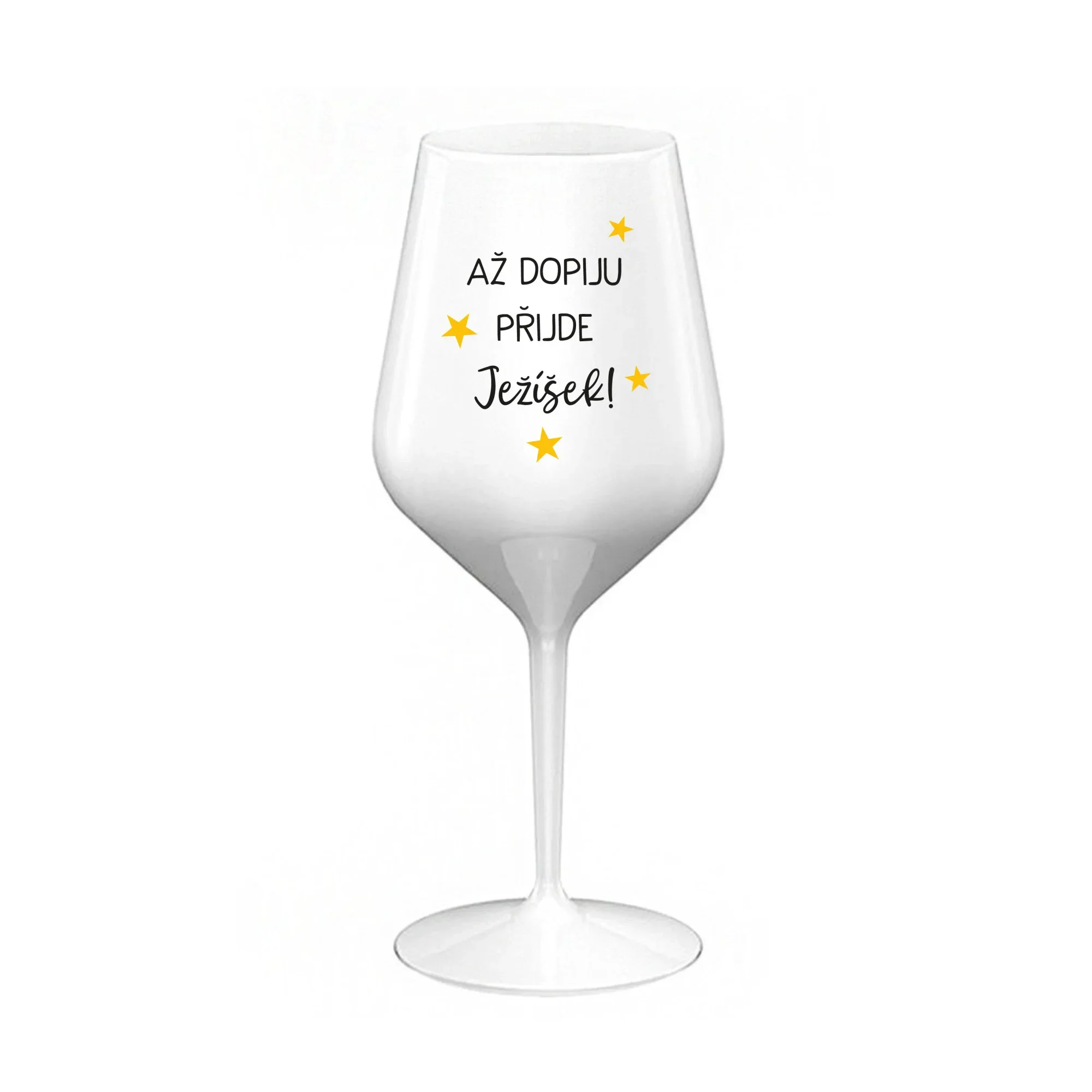 AŽ DOPIJU, PŘIJDE JEŽÍŠEK - bílá nerozbitná sklenice na víno 470 ml
