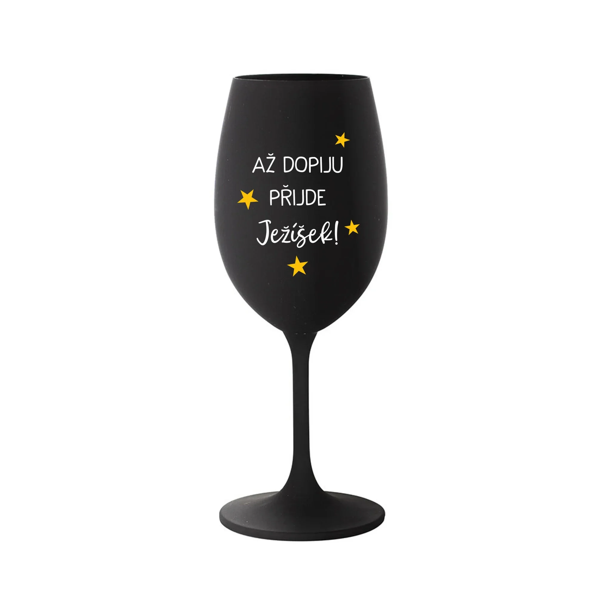 AŽ DOPIJU, PŘIJDE JEŽÍŠEK - černá sklenice na víno 350 ml