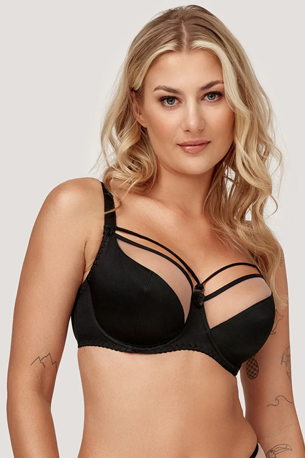 Podprsenka značky Azal. Model A560. Má dráty, které prsa vhodně tvarují. Výrobek má nastavitelné popruhy bez možnosti odepnutí. Podprsenka se zapínáním na háčky a oči. Upevňovací bod: vzadu. Dvě řady svislých háčků. Tři stupně horizontálních háčků. Výrobek je vyroben z 88 % z polyamidu, 8 % z bavlny a 4 % z elastanu. Výrobek pro ženy.