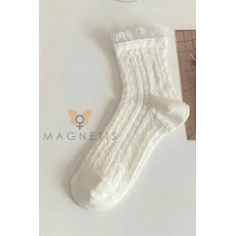 Skarpetki ażurowe Magnetis CC-251106 02 to stylowe, wzorzyste skarpetki damskie, które zachwycają subtelnym, romantycznym designem. Delikatny ażurowy splot nadaje im lekkości i elegancji, dzięki czemu doskonale sprawdzą się jako modny dodatek do codziennych oraz bardziej wyrafinowanych stylizacji. To idealny wybór dla kobiet ceniących kobiece detale i wysoką jakość wykonania. W składzie znajduje się aż 75% bawełny, co zapewnia naturalną przewiewność, miękkość oraz komfort noszenia przez cały dzień. Dodatek poliamidu zwiększa trwałość i odporność na uszkodzenia, poliester wpływa na estetykę materiału, a elastan gwarantuje elastyczność i idealne dopasowanie do stopy. Skarpetki nie zsuwają się, dobrze przylegają i zachowują swój kształt nawet po wielu praniach. Model CC-251106 02 marki Magnetis świetnie komponuje się z balerinami, loafersami, sneakersami czy botkami. Ażurowe skarpetki damskie to ponadczasowy element garderoby, który doda lekkości i uroku każdej sty