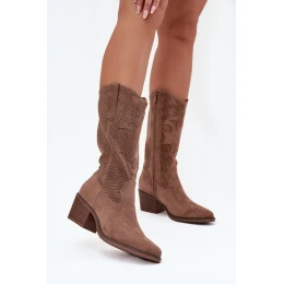Ažurové Kozačky Damské Na Podpatku Tmavě Béžové Olivette