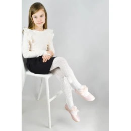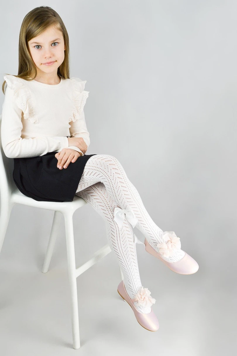 Ažurové punčocháče RB019 s mašlí od značky Noviti jsou jedinečným doplňkem dívčího šatníku, který spojuje eleganci s pohodlím. Jemný ažurový vzor dodává punčocháčům jemný a stylový charakter, zatímco ozdobná mašle podtrhuje jejich dívčí půvab. Model je ideální pro každodenní nošení, stejně jako pro rodinné oslavy, školní představení nebo focení.