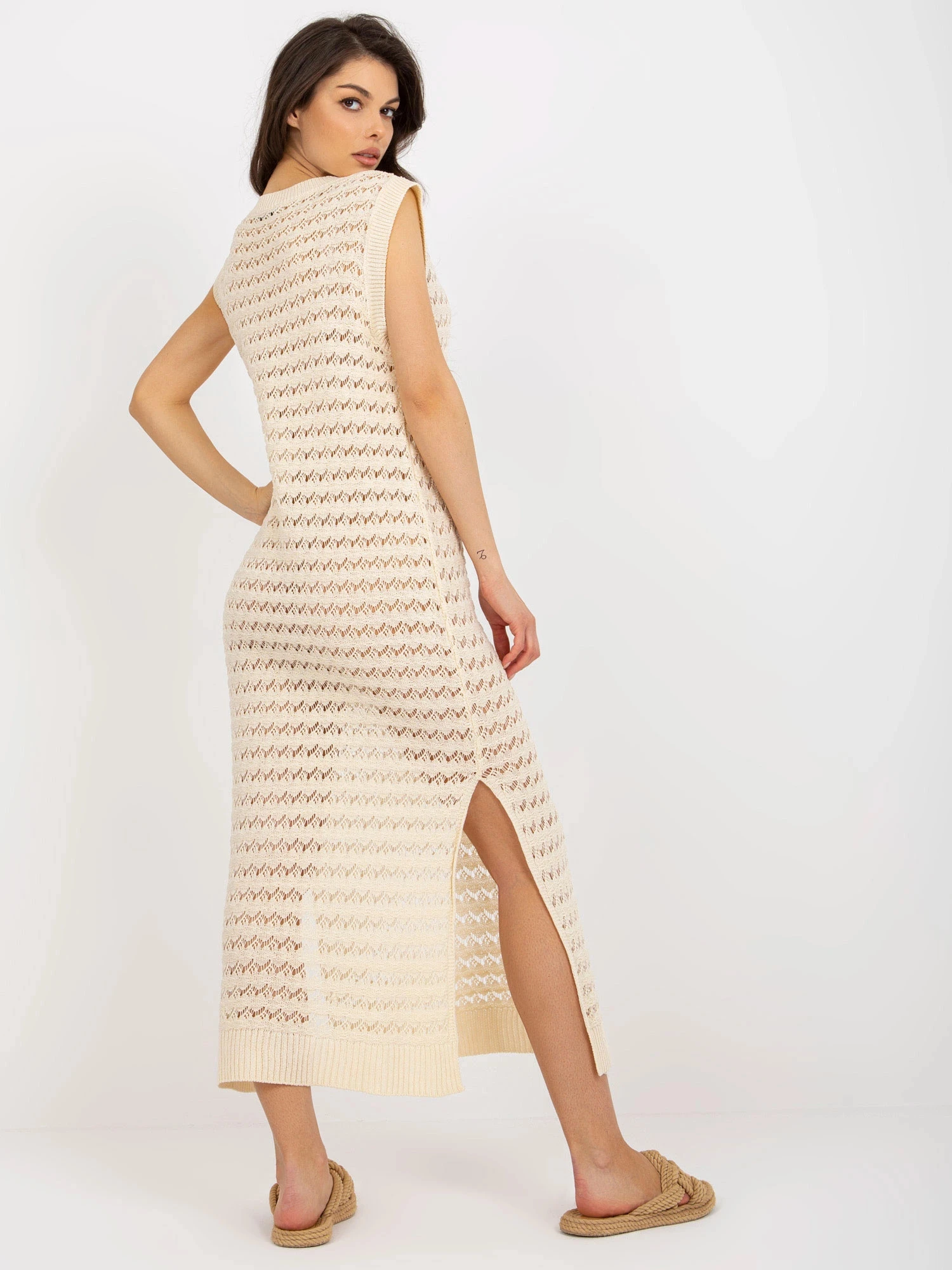 Béžové dámské plážové ažurové šaty (9003)