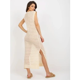 Šaty mají jednoduchý volný střih, kulatý výstřih a na bocích mají rozparky. Model má délku maxi.