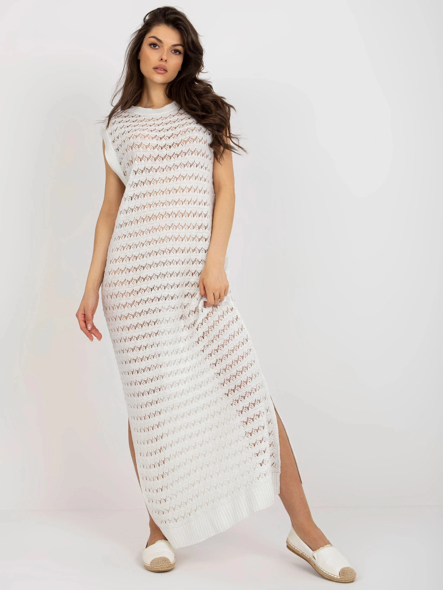 Bílé dámské plážové ažurové šaty (9003)