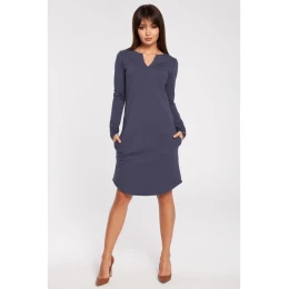 90 % bavlna 10 % elastan Jeden z nejoblíbenějších střihů - šaty áčkového střihu s vykrojeným výstřihem a zaobleným lemem prodlužujícím nohy. Měkká bavlněná směs, dlouhé rukávy a boční kapsy dodávají těmto šatům maximální pohodlí.