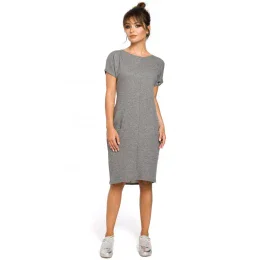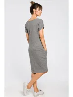 B050 Midi šaty s kapsami ve švu - šedé