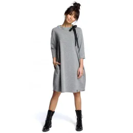 B070 Šaty nadměrné velikosti s páskem na zavázání - šedé