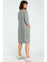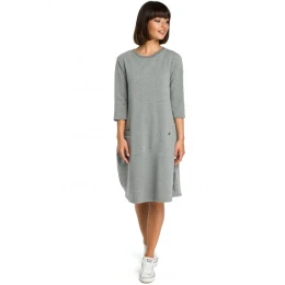 90% bavlna 10% elastan Pokud hledáte pohodlný a trendy kousek na každý den, ať už na doma, nebo na běžné vycházky, tyto oversized šaty s ozdobnou přední kapsou jsou to, co potřebujete. PODROBNOSTI O PRODUKTU: úplet volný střih žebrovaný lem výstřih boční kapsy tříčtvrteční rukávy naše modelka měří 172 cm a nosí velikost S