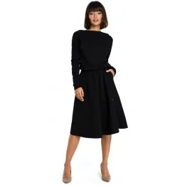 B087 Šaty midi střihu - černé